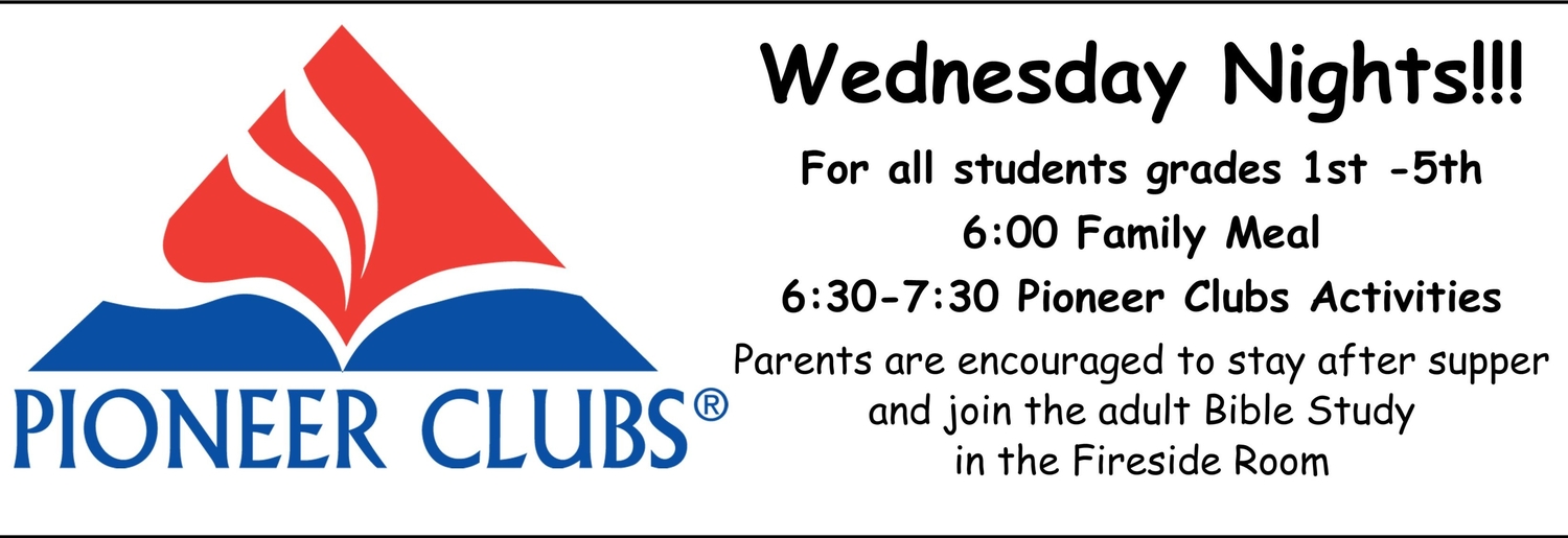 Calendar View All OCT 19 9:00 AM - 10:00 AM Praise and Worship Service Welcome to our Praise and Worship Service. In this service we strive to praise a... more OCT 19 10:10 AM - 11:00 AM Sunday School for 4 year olds - Adults There is a class for you!! Student classes begin at the age of 4 (preschool)-12t... more OCT 20 3:00 PM - 4:00 PM Patience Bible Study OCT 21 8:30 AM - 11:00 AM Quilters Come help our Quilters make blankets and sleeping bags for the homeless. NO QUIL... more OCT 22 6:00 PM - 7:30 PM Pioneer Clubs and Family Night OCT 22 6:00 PM - 7:30 PM Middle School Remnant Supper at 6:00 pm with a meeting at 6:30pm more OCT 22 7:30 PM - 8:30 PM HS Remnant Come for supper at 6:00pm, and help out with Pioneer Club. Remnant activities st... more OCT 26 9:00 AM - 10:00 AM Praise and Worship Service Welcome to our Praise and Worship Service. In this service we strive to praise a... more OCT 26 10:10 AM - 11:00 AM Sunday School for 4 year olds - Adults There is a class for you!! Student classes begin at the age of 4 (preschool)-12t... more OCT 28 8:30 AM - 11:00 AM Quilters Come help our Quilters make blankets and sleeping bags for the homeless. NO QUIL... more OCT 29 6:00 PM - 7:30 PM Pioneer Clubs and Family Night OCT 29 6:00 PM - 7:30 PM Middle School Remnant Supper at 6:00 pm with a meeting at 6:30pm more